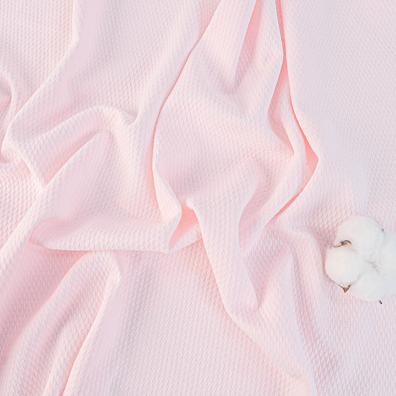 Это простая жаккардовая ткань с пузырьковой сеткой шириной 185 см и весом 240 г/м2. Характеристики процесса: 95% расчесанный хлопок + 5% спандекс, сотканная на жаккардовой машине для создания трехмерной текстуры пузырьковой сетки и формирования структуры микровоздушного слоя. Эта ткань эластична и подходит для многосуставной деятельности ребенка. Уникальная структура пузырьковой сетки может уменьшить площадь контакта с кожей на 40%, и она не липкая при ношении летом. Рекомендуемые области применения включают спальные мешки для новорожденных, одежду для ползания и комбинезоны для защиты живота, особенно для детей с потливым телом.