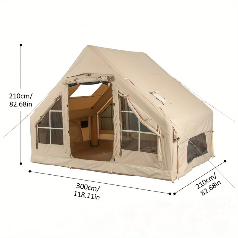 Эта инфляционная палатка площадью 6,3 м² представляет собой модель классического дизайна. Она имеет водонепроницаемый и усиленный дизайн, в комплект входят ветровые канаты, грунтовые гвозди и сумка для хранения. В летний период предусмотрен дизайн с москитными сетками (защищает от комаров), а зимой — шторы для защиты от ветра, что идеально соответствует вашим ожиданиям от кемпинга.