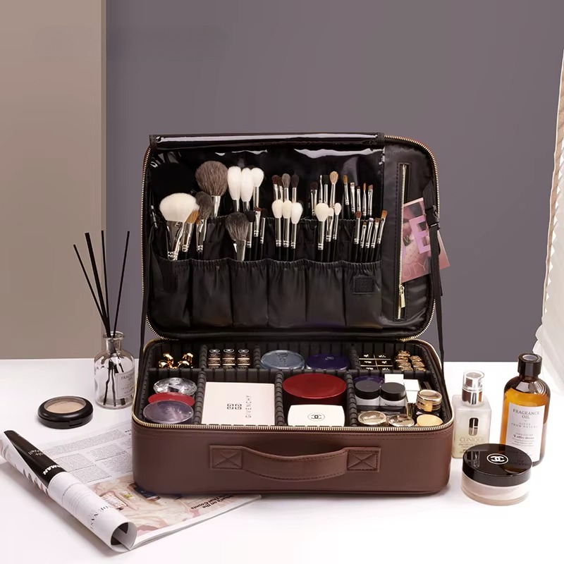 Средний (37×26×10 см, 8 л): компактная многослойная конструкция, подходящая для размещения часто используемых продуктов, таких как тональный крем, карандаш для бровей, хайлайтер и т. д., а также боковые карманы для быстрого доступа к помаде;