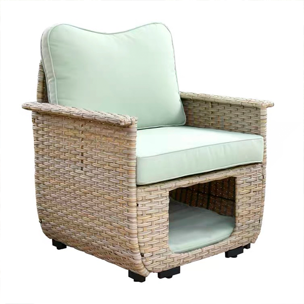 Основная рама изготовлена из пяти алмазных трубок, которые сплетены вручную с использованием передовой и стабильной технологии сварки, резки и формовки, а также технологии высокотемпературного порошкового напыления 400 градусов. Эта технология относится к разряду исторических нематериальных активов, оставшихся в Китае. Экологически чистый плетеный полиэтиленовый ротанговый лист имеет тяжелую текстуру и пригоден для царапания домашними животными, а его текстура очень нравится домашним животным.