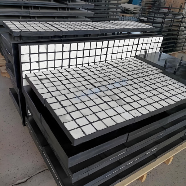 Защита от выпадения: вулканизация керамических каучуковых стальных листов, очень прочная комбинация; Каждая керамика имеет проникающий болт, проходящий через нижнюю стальную пластину, прочно сваривается, двойное страхование;