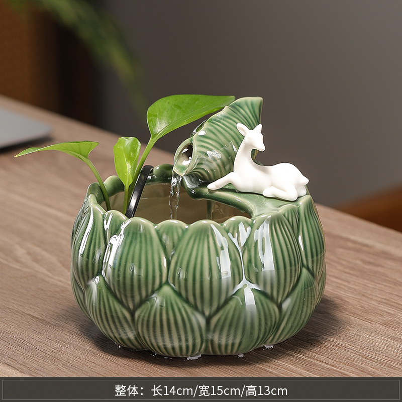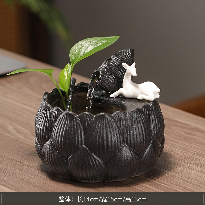 Керамический фонтан «Белый олень и лотос» станет прекрасным украшением интерьера, придающим спокойствие и естественную красоту вашему дому или рабочему пространству.