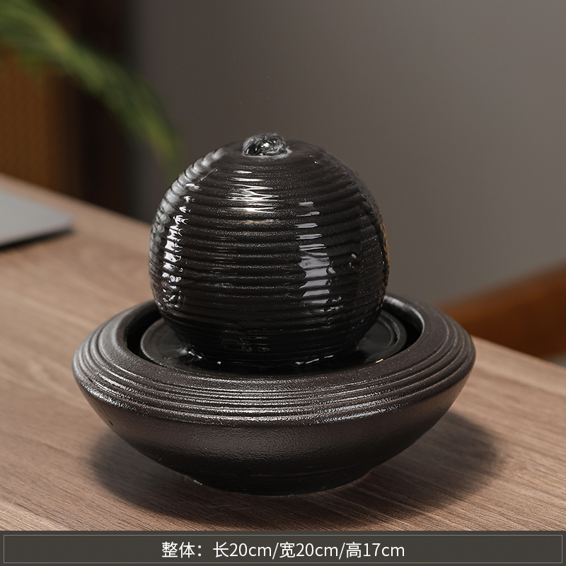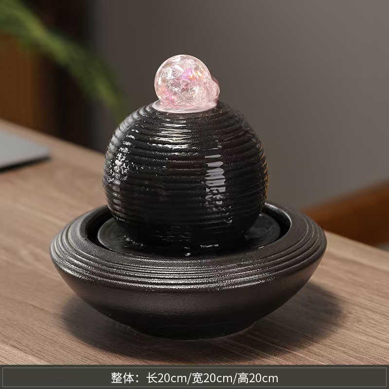 Керамический фонтан-декор «Чёрная сфера с жемчужиной» — это минималистичное решение для тех, кто ценит эстетику простоты и философию гармонии. Основой композиции является чёрный керамический шар, на вершине которого расположена прозрачная вращающаяся жемчужина. Под напором воды она плавно двигается, символизируя непрерывное течение энергии, удачи и благополучия.