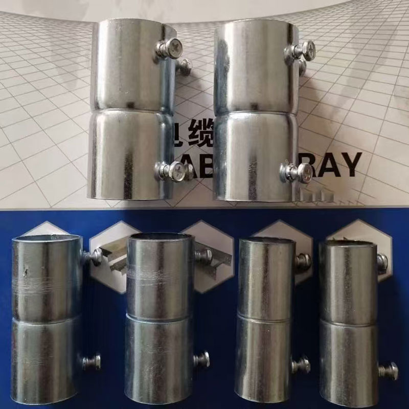 Является ключевым аксессуаром для соединения двух прямых труб, так что трубопровод образует непрерывный канал. Как правило, они делятся на три типа: натяжной, натяжной и вращающийся. Прямое соединение с застежкой предназначено для соединения оцинкованных проводов KBG и прижима их к трубам с помощью удерживающих щипцов, удобных в эксплуатации, плотно соединенных и не требующих пересечения заземленных линий; Нажимные и вращающиеся обычно используются для подключения оцинкованных труб JDG, но также могут использоваться для подключения оцинкованных труб KBG, плотное соединение осуществляется с помощью плотного натяжного трубопровода верхней проволоки трубы, а вращающийся тип имеет характеристики большого натяжения и сильной стабильности. Типичные внешние диаметры: F 16, F 20, F 25, F 32, F 40, F 50, толщина стенок около 1,0 - 1,5 мм, длина 50 - 120 мм