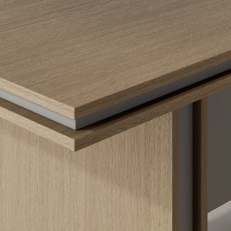 3、Кромка ПВХ: используется высококачественная кромочная лента ПВХ, на стыках применяется технология тонкой кромки, на контактных поверхностях — технология толстой кромки.