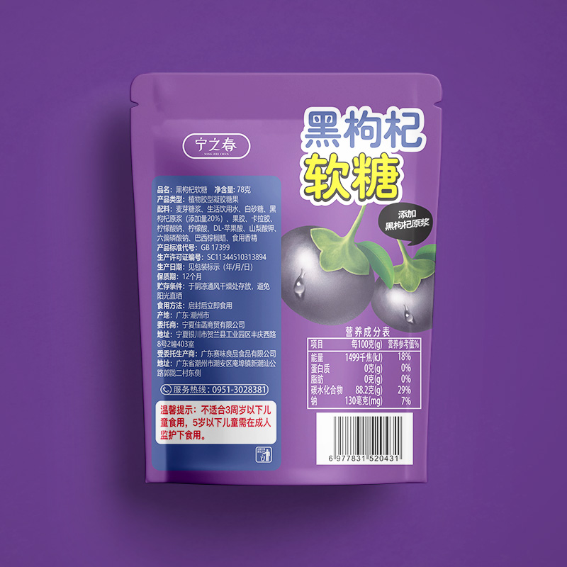 【Название продукта】Мягкие конфеты Ningzhichun Black Wolfberry 78 г