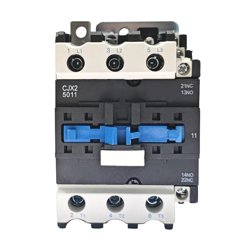 Контактор переменного тока Дунхэ CJX2-5011 с питанием от постоянного тока относится к серии CJX2-Z и подходит для цепей переменного тока 50 Гц или 60 Гц с номинальным напряжением изоляции 690 В. Работая в категории использования AC-3 с номинальным рабочим напряжением 380 В, он обеспечивает номинальный ток 50 А. Это позволяет эффективно дистанционно управлять цепями и операциями переключения для другого электрооборудования, особенно подходящего для тяжелых промышленных применений, таких как большие промышленные компрессоры, тяжелое транспортировочное оборудование и мощные вентиляторы, требующие частого запуска трехфазных двигателей с короткозамкнутым ротором.