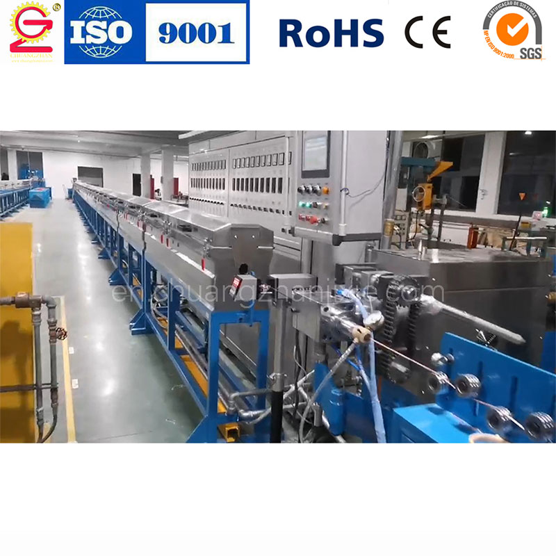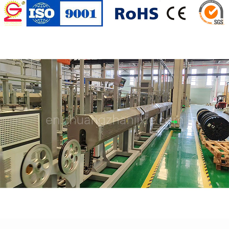 Горизонтальная вулканизационная печь горячего воздуха с двухступенчатым технологическим процессом (шоковая/ударная печь, последующие печи), эффективность увеличена в 3–4 раза. Дополнительно возможно использование печи с циркуляцией горячего воздуха, адаптированной к специальным типам кабелей, рабочая длина регулируется.