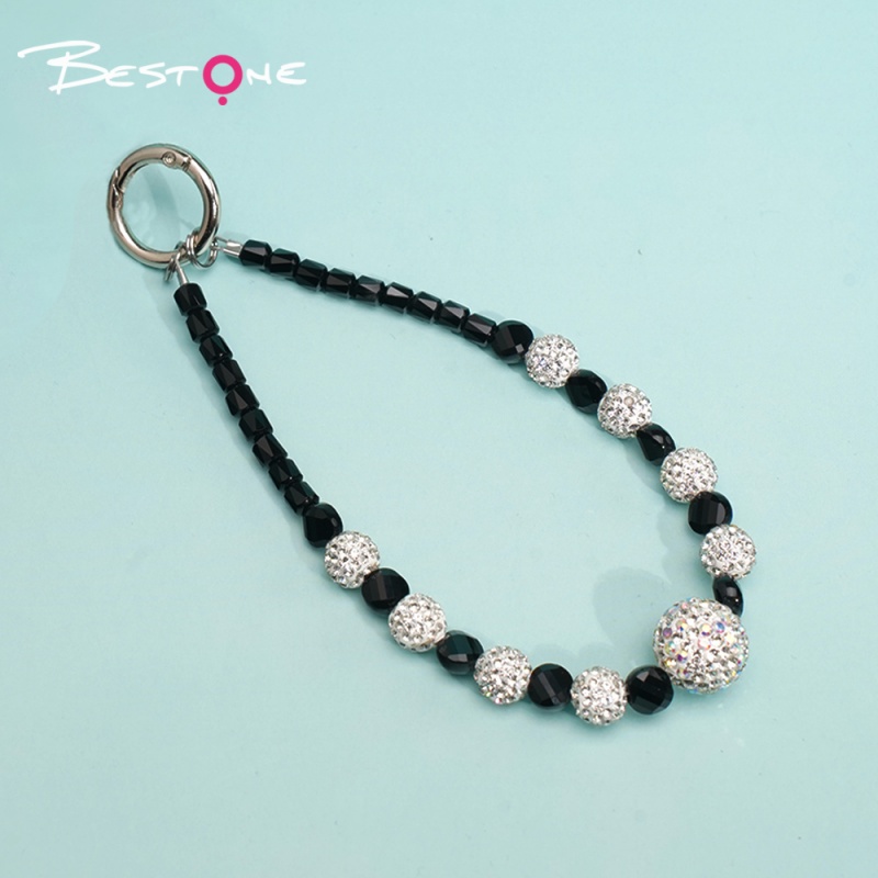 Материал изделия: Ограненные цилиндрические бусины из стекла с цветным напылением (5×6 мм) / Ограненные приплюснутые бусины (5×8 мм) / Круглые стразы (10 мм) / Металлическое пружинное карабиновое крепление