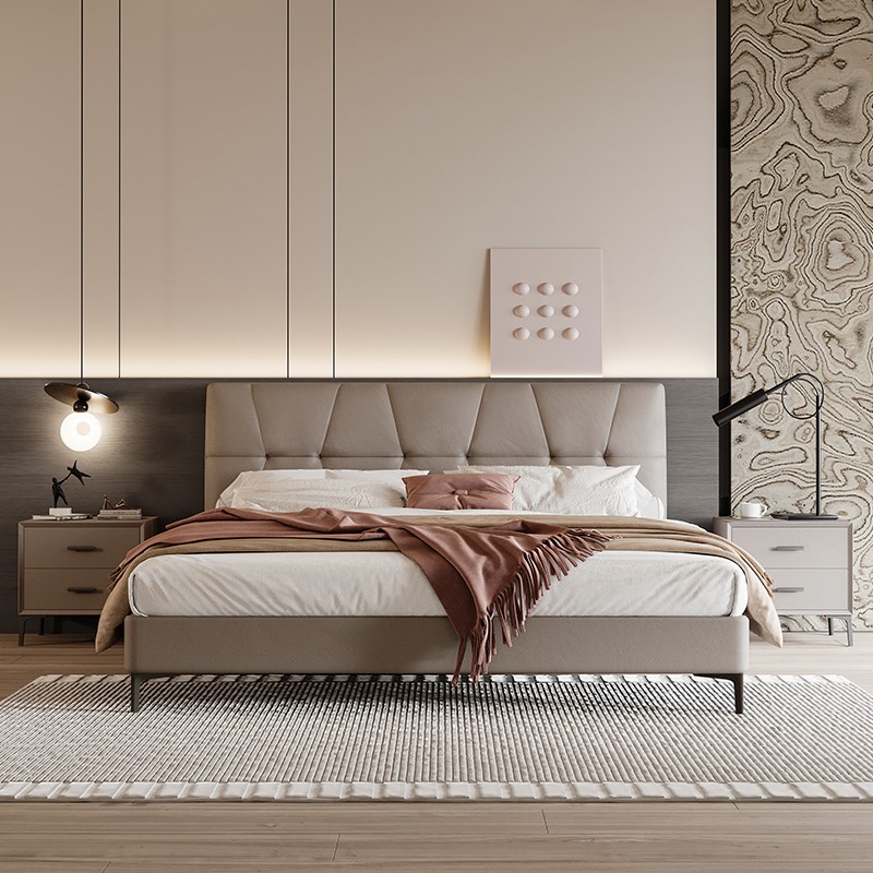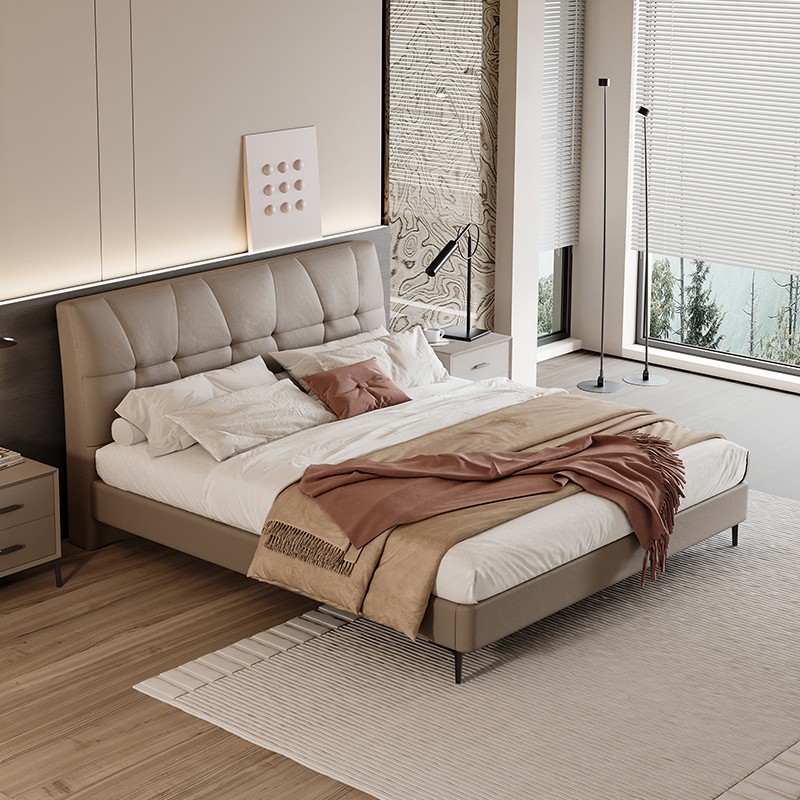 Название: Кожаная кровать с деревянным каркасом + обивка из натуральной кожи первого сорта + трехсторонний компактный дизайн + изысканная строчка + высокоплотный поролон + выбор размеров