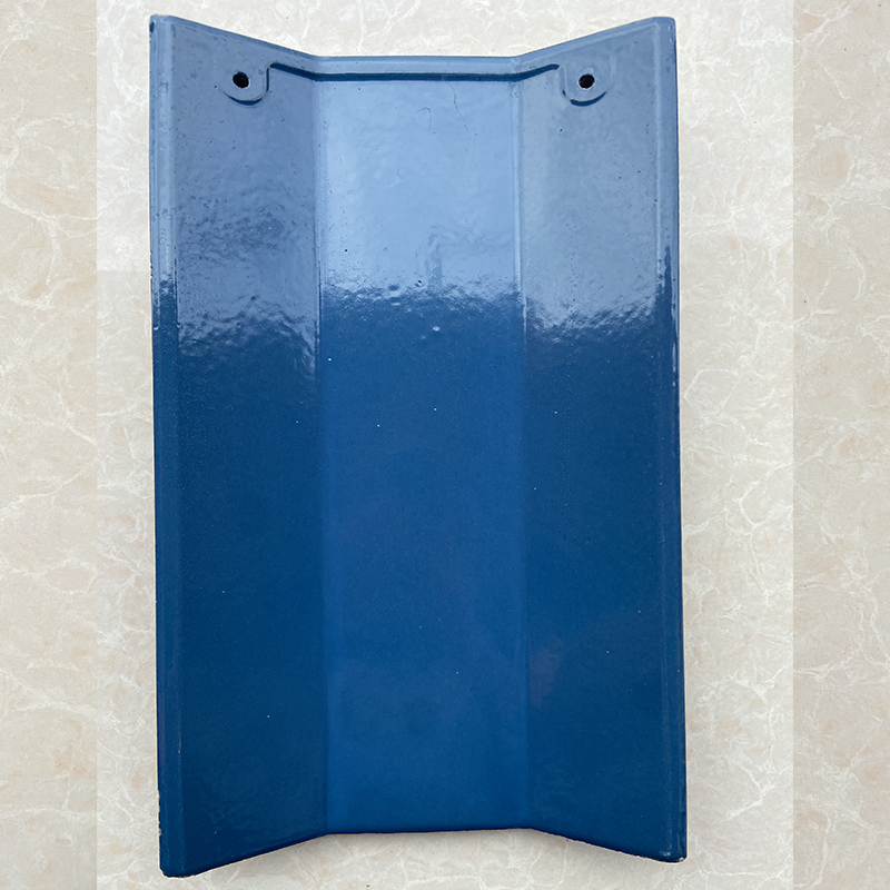 375ммx230мм Кровельная черепица с синим кристаллическим глазурованным покрытием, используя фарфоровой глины сырья тонкого помола заготовки, большой тоннаж автоматический пресс формования, односторонняя глазурь, 1130 градусов ролик печи непрерывного обжига. Внешний вид продукта нежный и яркий, продукт имеет хорошую водопроницаемость, хороший эффект соединения для сложных крыш, низкое водопоглощение, высокая прочность на изгиб, хорошая теплостойкость и морозостойкость.