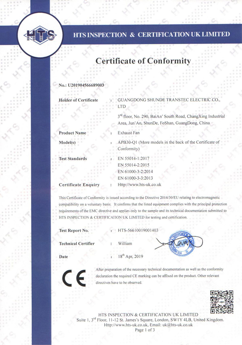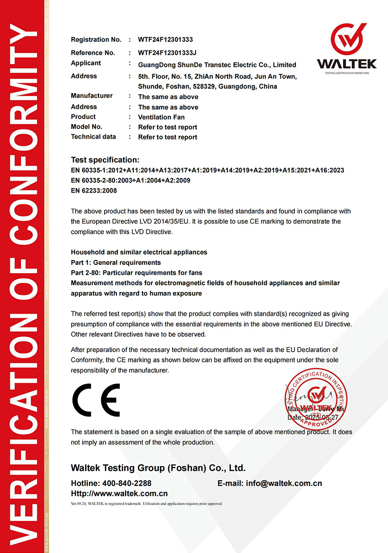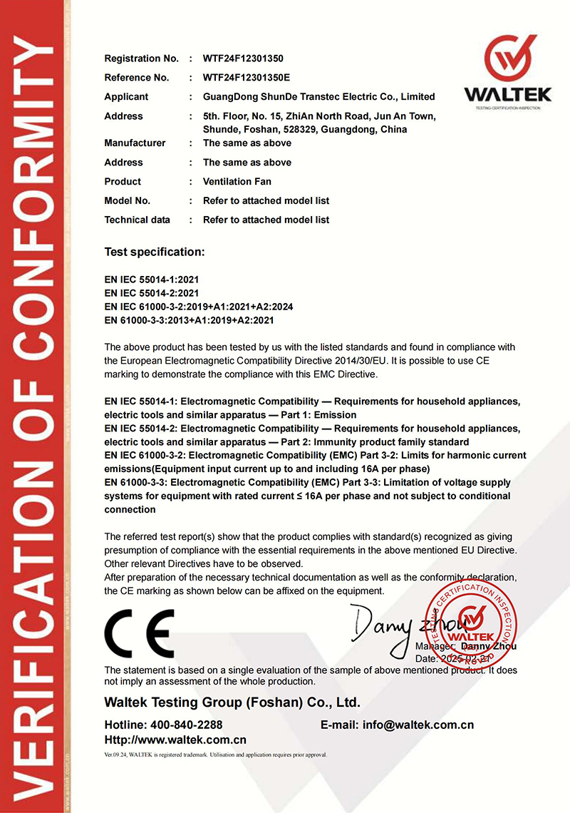 Компания расположена в городе Фошань, район Шунде, который является центром производства бытовой техники. Основана в 2018 году. Мы специализируемся на производстве вентиляционного оборудования, обладаем современным оборудованием, совершенствованной системой, зрелыми технологиями и отличной командой. Transtec — это профессиональный завод по производству вентиляторов, сочетающий производство с научно-исследовательской деятельностью, занимающий площадь 10 000 м². Наши основные продукты — это вентиляторы для вентиляции, промышленные вентиляторы и различные виды домашних вентиляторов. Наша производственная мощность составляет 1 500 000 комплектов вытяжных вентиляторов и 500 000 комплектов домашних вентиляторов в год. Мы обладаем полным промышленным оборудованием, включая машины для пластмассового литья, производство моторов и другие.