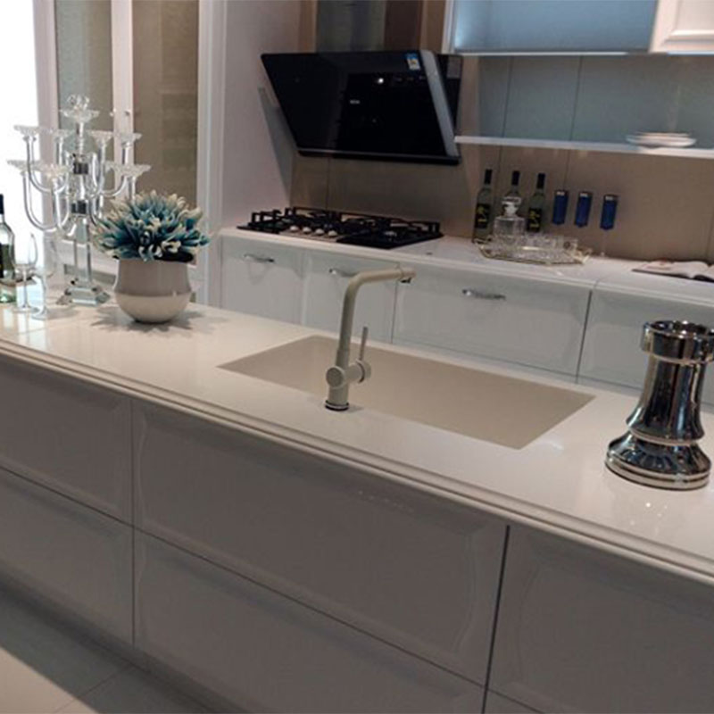 Кухонная столешница из акрилового искусственного камня сочетает в себе красоту и практичность. Ее поверхность из акрилового материала, отличный блеск, нежная текстура, для придания кухне модного стиля. Она обладает хорошей прочностью, на ней нелегко образуются царапины или разрывы из-за ежедневной рубки и ударов, она обладает высокой прочностью. Внутренние корни искусственного камня прочны и стабильны, хорошо сопротивляются давлению, выдерживают все виды кухонной утвари, тяжелые предметы, размещенные, и плотно сочетаются с акрилом, столешницы нелегко деформировать. Разработанные в различных стилях, подходят для различных кухонных декоров. Уборка также очень проста, пятна трудно прилипают, протрите влажной тканью, и они будут как новые. С точки зрения установки, относительно легкий вес, простота установки, может быстро создать идеальное рабочее пространство кухни.