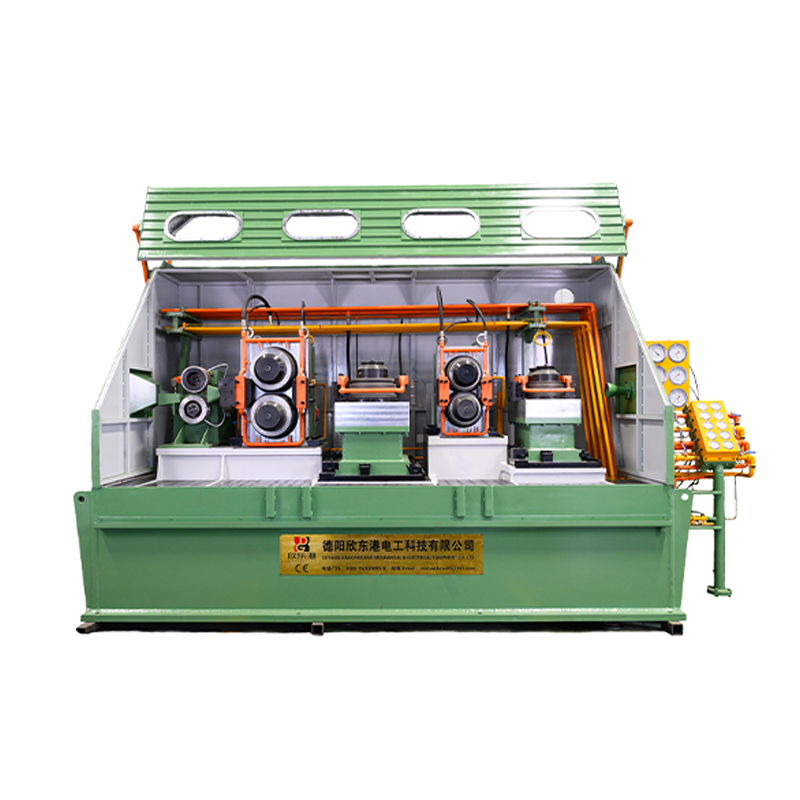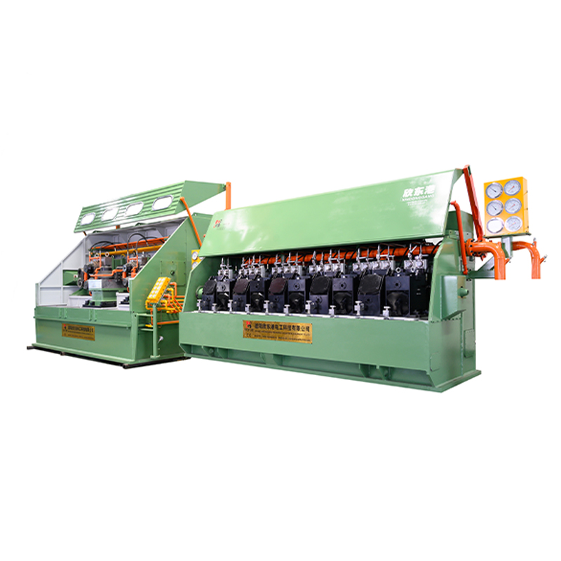 Специально разработана для производства катанки класса EC и алюминиевого сплава, интегрирована технология разделения масла и воды для обеспечения чистоты поверхности. Заготовка большого сечения 3400 мм² проходит точную прокатку на 14 клетях (4 дуо + 10 трио), выпуская катанку диаметром φ9,5-15 мм. Двухбарабанная намотка обеспечивает высокоскоростное непрерывное производство с производительностью до 4,5 т/ч для алюминиевого сплава.