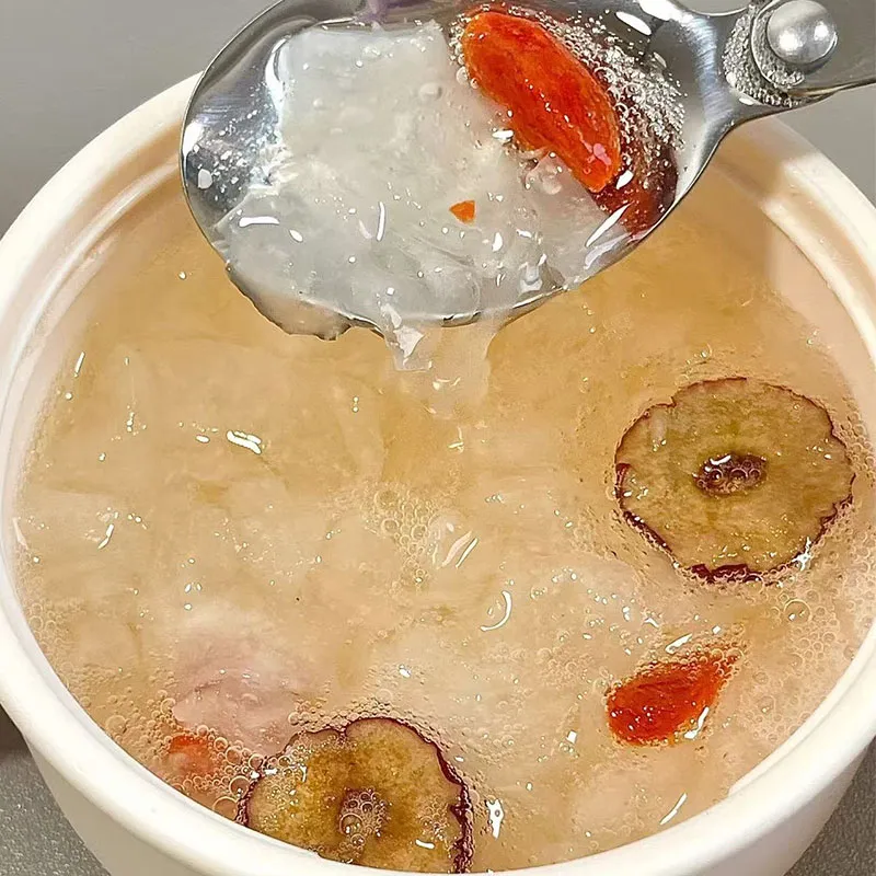 2.Ингредиенты проходят восемь этапов: промывание, смешивание, томление на медленном огне в течение 5 часов, измерение и раскладывание по тарелкам, заморозка при температуре -40°C в течение 6 часов, вакуумная сушка в течение 48 часов, выгрузка, очистка и упаковка. Приготовление супа занимает более 48 часов, что гарантирует строгий контроль качества и безопасность пищевых продуктов.