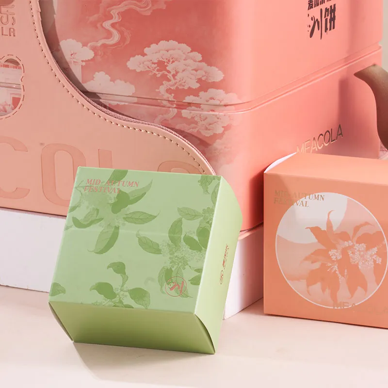 Эта подарочная коробка выполнена из двухслойной жестяной ткани с металлическим корпусом и кожаными ручками. Изящный логотип «чуань» гармонично сочетается с очертаниями панды. Надпись «Сычуаньские лунные пряники» на боковой стороне коробки служит отличительным знаком, а тисненый узор в виде облаков выложен на текстуре. От утонченной прохлады металла до мягкой и элегантной кожи, от региональных символов до сезонных поздравлений – каждая деталь воплощает искреннее чувство «нести любовь с учтивостью, полная луна над Сычуанем и Чунцином», что делает эту коробку элегантным подарком к Празднику середины осени.