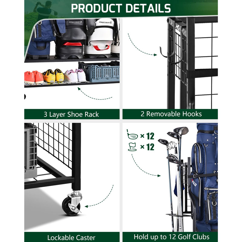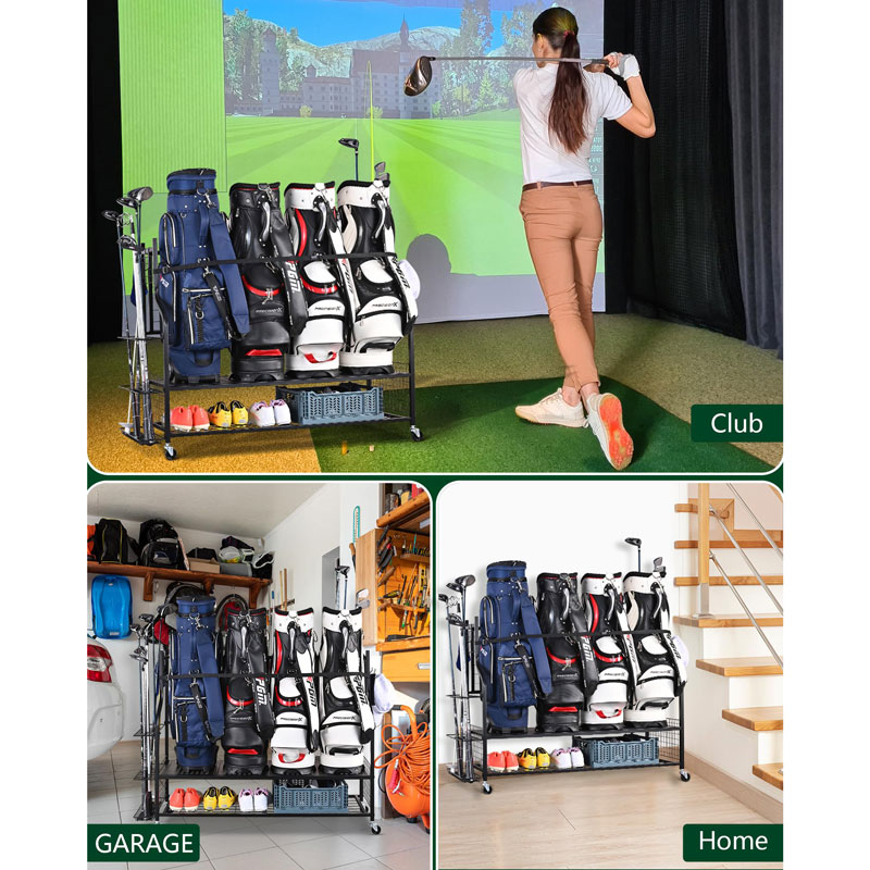 изготовленная из высококачественных прочных материалов, эта стойка для сумок для гольфа рассчитана на длительный срок службы. Она обеспечивает прочную и стабильную основу для ваших сумок для гольфа, вмещая сумки различных размеров без ущерба для прочности.