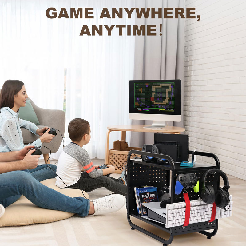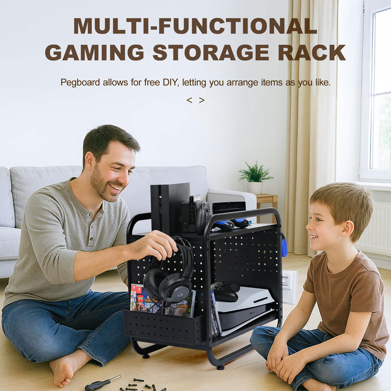 Практичный подарок для геймеров, идеально подходящий для дней рождения или новоселья. Помогает поддерживать порядок и обеспечивает легкий доступ к консолям, контроллерам, наушникам и игровым дискам.