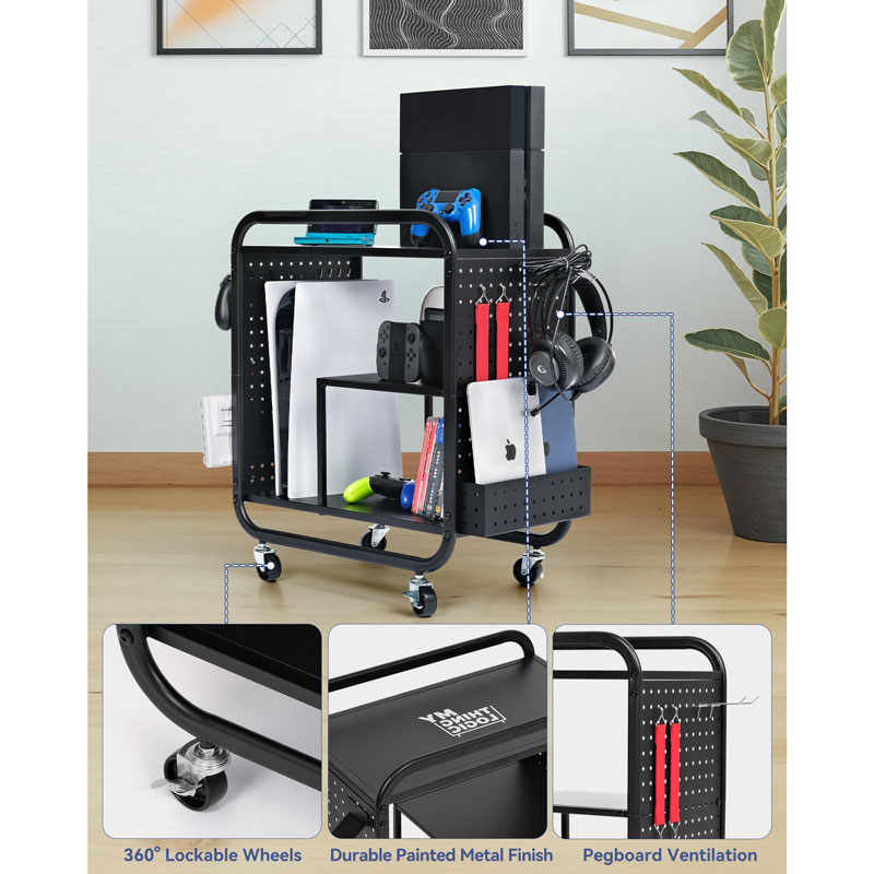 Перемещайте этот подвижный держатель для игр без усилий между комнатами, будь то из гостиной в спальню или игровую комнату. Запираемые ролики обеспечивают стабильность и надежность, что идеально подходит для любой игровой установки.