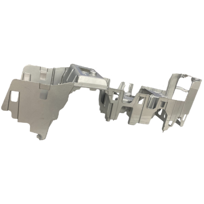 Эта пресс-форма горячекамерного литья предназначена для производства каркасов приборных панелей премиальных автомобилей. Используя усилие смыкания 32 000 кН, она обеспечивает прецизионное формование основного каркаса приборной панели из магниевого сплава весом 4,3 кг, достигая 50% снижения массы при сохранении требований к безопасности при столкновениях. Пресс-форма оснащена десятью гидравлическими системами вытяжных стержней и специальными коррозионностойкими сердечниками, что позволяет идеально воспроизводить сложные тонкостенные структуры за одну операцию литья. Инновационная система защиты расплава и трехзонная технология температурного контроля эффективно предотвращают окисление магниевого сплава, обеспечивая пористость изделия ниже 0,3%. Особенно разработанная усиленная сетчатая структура повышает крутильную жесткость компонента на 35%, что полностью соответствует требованиям интеграции многофункциональных систем интеллектуального салона. Модульная конструкция пресс-формы с быстрой сменой компонентов позволяет сократить время переналадки до 20 минут, предлагая идеальное решение для электромобилей, сочетающее легкость и высокую жесткость.