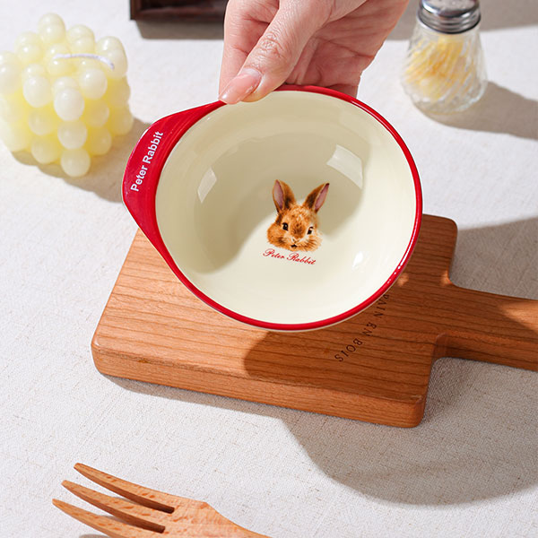 Изысканный миниатюрный дизайн, удобно держать в руке, очень практична как для русских мясных соусов, так и для подачи гарниров к борщу. На тарелке напечатаны милые мультяшные рисунки: девочка и кролик Питер, которые выглядят забавно и оживленно, а красно-белая расцветка привлекает внимание и легко создает атмосферу за столом.