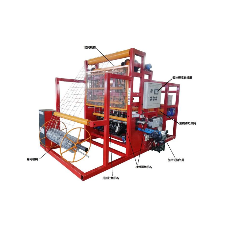 Управление программированием ПЛК + управление сенсорным экраном, настройка размера ячеек одной кнопкой (регулируется от 5 до 20 см), количества узлов и плотности пучков, скорость работы в два раза выше, чем у аналогичных отечественных моделей, а ежедневный выпуск превышает 3000 квадратных метров.