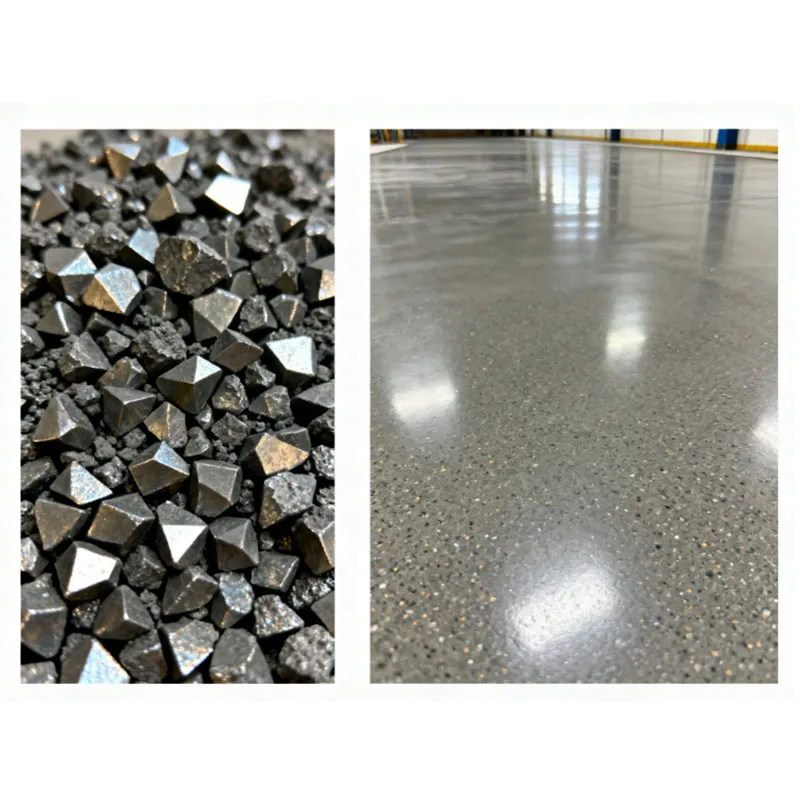 Износостойкие напольные покрытия из карбида кремния состоят из минеральных наполнителей определенной гранулометрии, специального цемента, других добавок и модификаторов. Смесь равномерно распределяется по поверхности бетона на этапе его начального схватывания и обрабатывается специальным методом, в результате чего формируется монолитное, высокоплотное и окрашенное высокоэффективное износостойкое покрытие.