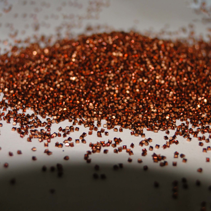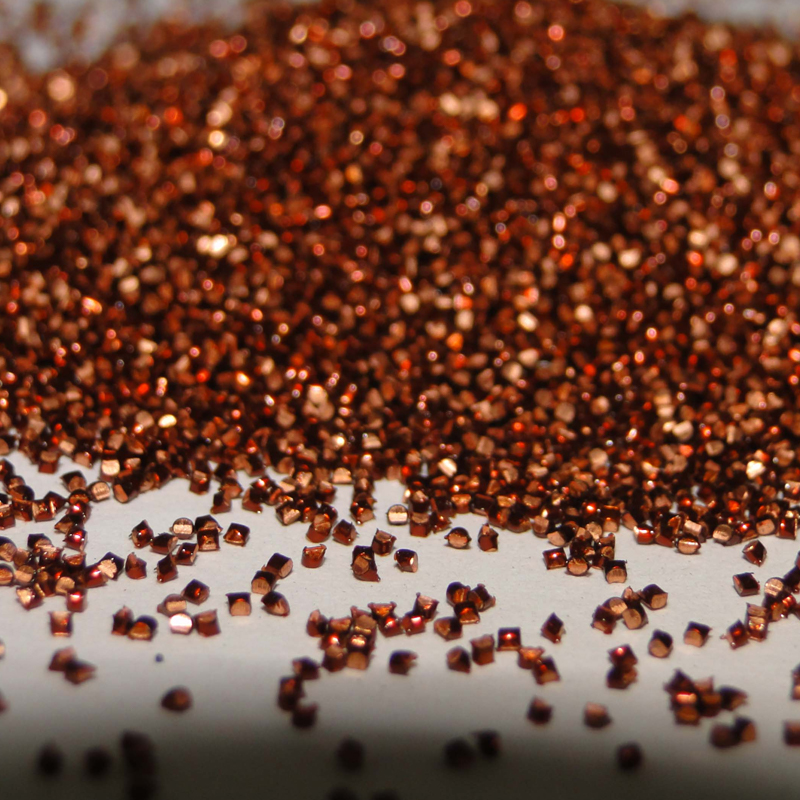 Подобно цинковому абразиву, он может подвергаться пескоструйной обработке без истирания поверхности изделия, а цвет обработанного изделия - медно-коричневый.