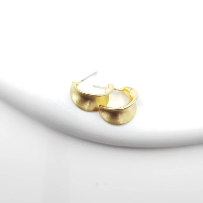Это пара золотых сережек.Он имеет простую дугообразную форму и изготовлен из меди с позолоченным покрытием. Его стиль прост и универсален, подходит для повседневной носки и легко сочетается с различными стилями одежды, демонстрируя сдержанное чувство моды.