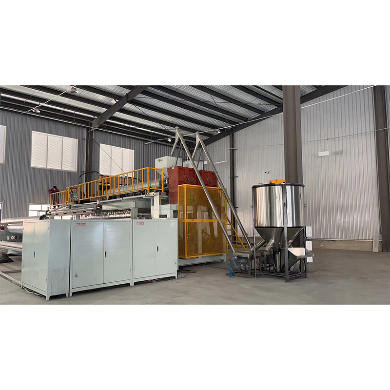 Оборудование может быть сконфигурировано для производства композитного геотекстиля (нетканого материала), тканого полотна, сетчатого композита и многоцелевых геотекстильных композитных материалов на одном станке.