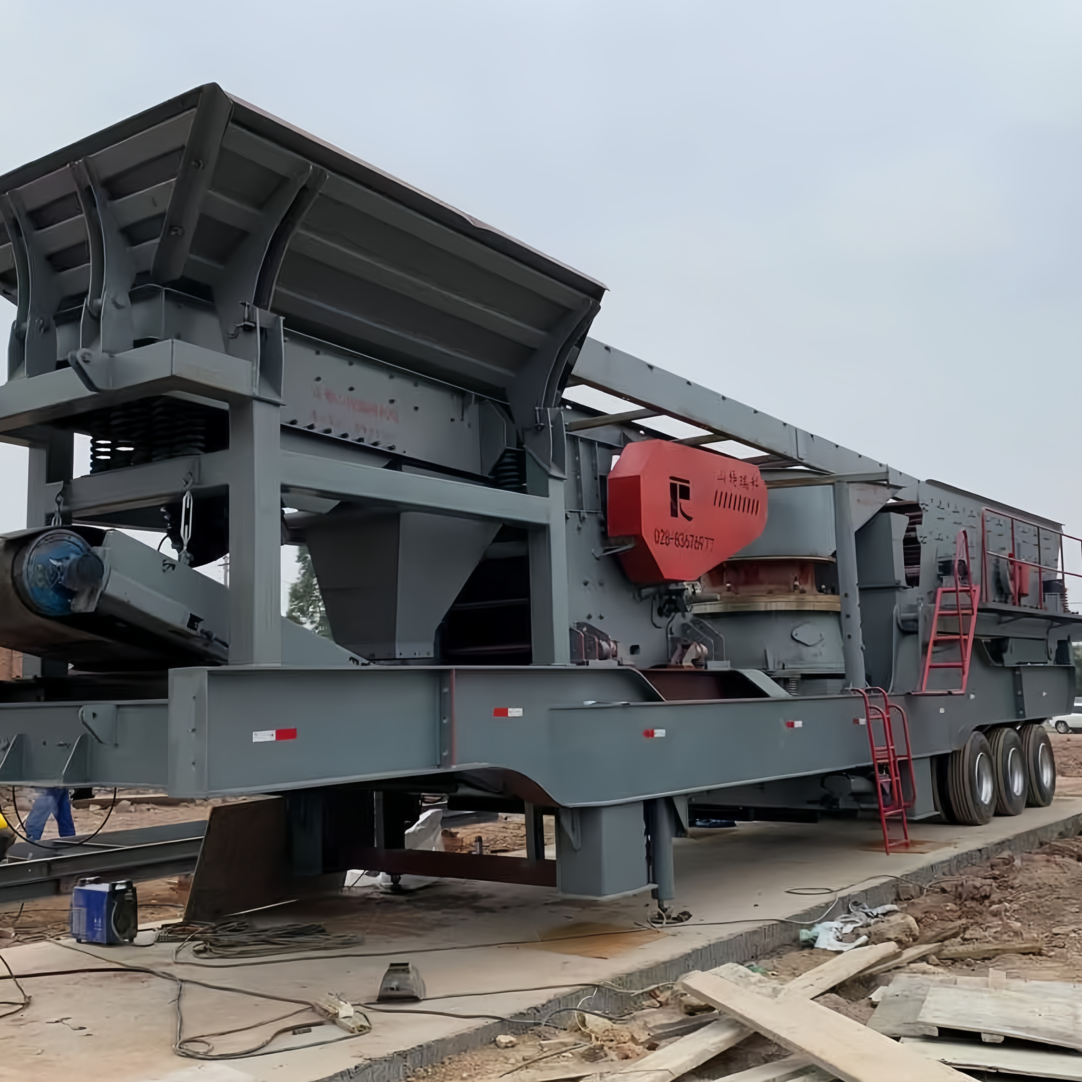 Наша мобильная конусная дробилка в основном состоит из шасси на шинах, узла конусной дробилки, вибрационного грохота, ленточного конвейера, системы питания (внешний источник питания или дизель-генераторная установка) и интегрированной гидравлической электронной системы управления. Сборка рамы и вспомогательное оборудование устанавливаются интегрированным образом. Узел может адаптироваться к различным типам дробильных камер для удовлетворения ваших разнообразных производственных потребностей.
