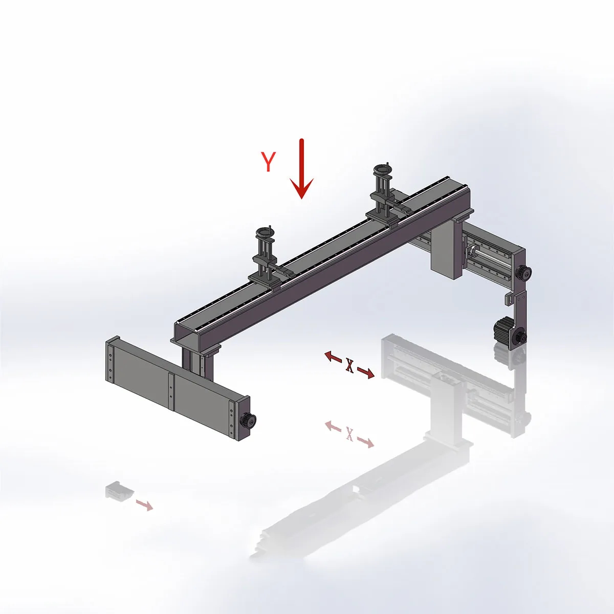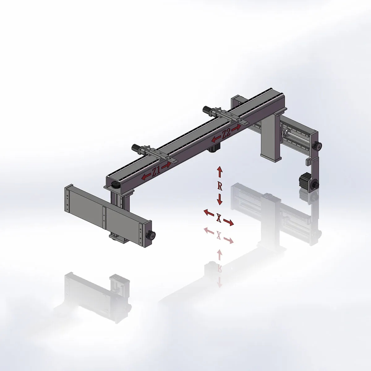Оси X и R оснащены шариковыми винтами и линейными направляющими для обеспечения высокой точности и плавности перемещения.