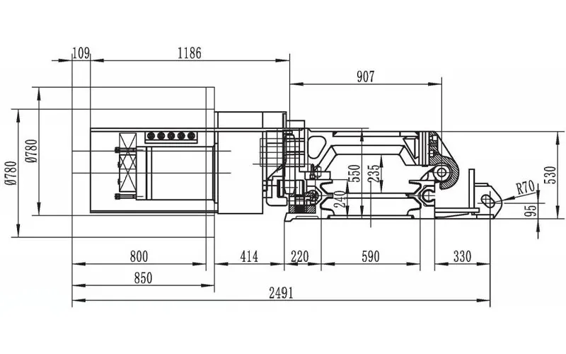 Точка тягового привода расположена на угольном забое, а условия нагрузки аналогичны условиям работы обычных очистных комбайнов.