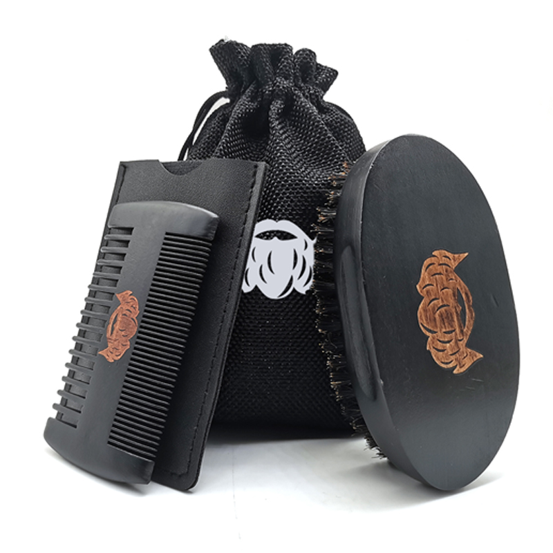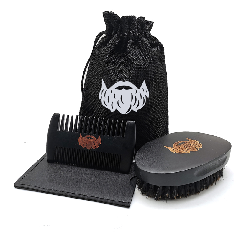 3.Изысканный дизайн : на расческе и щетке выгравированы узоры, а на сумке для хранения — логотип в виде бороды, общий дизайн узнаваем.