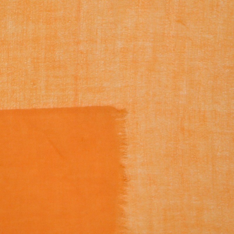 использует высокотемпературный процесс окрашивания, теплый оранжевый цвет насыщенный и полный, без разнородных цветовых ореолов. Края сохраняют микро-бахрому камвольной ткани, добавляя температуру ручной работы, каждый дюйм ткани похож на «яркий кусочек восхода солнца», воспроизводя баланс между теплом и легкостью.