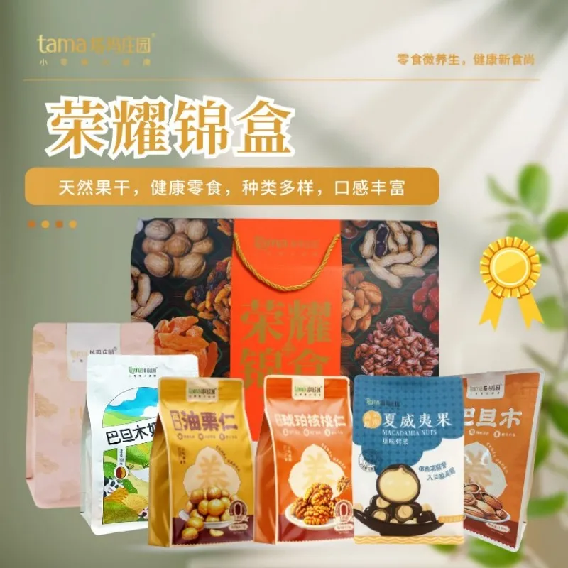 Этот набор закусок включает шесть различных вкусов, каждая из которых скрывает свою особую задумку. 240 г гавайского ореха из Линцаня, Юньнань, отобранного в солнечном регионе: ядра крупные и округлые, слегка обжаренные для сохранения натурального орехового аромата, после очистки хрустящие и нежные, идеальны для просмотра сериалов или перекуса в офисе. 175 г грецких орехов с горного плато в карамельной глазури: орехи, выращенные на солнце высокогорья, покрыты тонким слоем янтарного сахара, сладость ровная, сочетание мягкой текстуры и лёгкого жевательного эффекта создаёт гармоничный вкус. 175 г каштанов с высокогорья: тщательно отобранные каштаны медленно пропарены для сохранения свежести, очищены от скорлупы и кожицы, мякоть плотная и нежная, раскрывает натуральную сладость каштанов, удобно есть без очистки. 150 г миндаля из Синьцзяна: плоды крупные и плотные, слегка обжаренные для сохранения натурального вкуса, хрустящие с выраженным ореховым ароматом, богаты белком, полезны и сытны. 210 г йогуртовых шариков с боярышником: внешний слой — нежное йогуртовое покрытие, внутри — мягкий и сладко-кислый боярышник, баланс кислого и сладкого идеально выдержан, один шарик — настоящее удовольствие. 158 г молочных фиников: крупные красные финики в плотной молочной оболочке, с хрустящей начинкой из орехов, сочетание сладости финика, сливочности молочной оболочки и хруста орехов создаёт богатую многослойную текстуру, каждый вкус дарит уникальное наслаждение. |