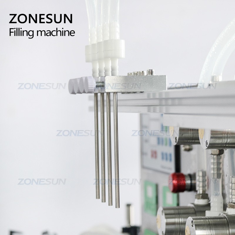 Эта разливочная машина оснащена 4 подъемными насадками, скорость розлива и время для каждой насадки могут контролироваться отдельно. Этот тип насадки идеально подходит для пенистых жидкостей. Мы можем настроить машину с 6 насадками для более эффективного производства, если вам это необходимо, пожалуйста, свяжитесь с нами.
