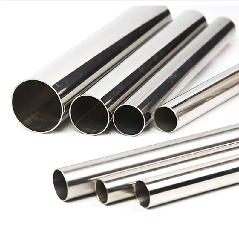 Нержавеющая круглая труба с зеркальной поверхностью, обработанная механической полировкой для достижения высокой степени блеска.