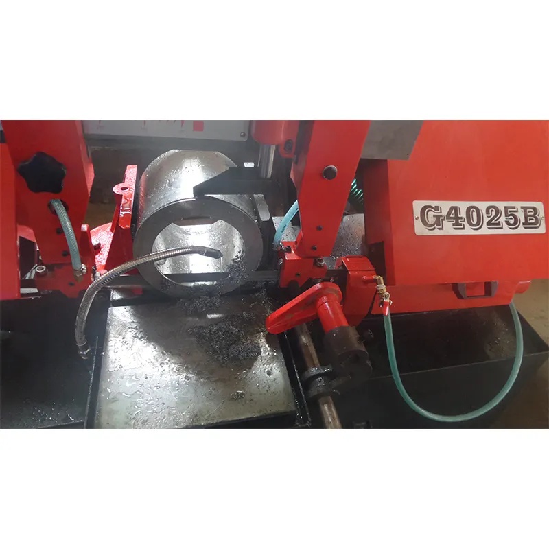 Ленточнопильный станок по металлу модели G4025B представляет собой полуавтоматический шарнирный горизонтальный ленточнопильный станок, в процессе резки вспомогательное время сокращается, а эффективность резки повышается. После зажима заготовки гидравлическими тисками, одним нажатием кнопки запускается процесс: пильная лента начинает вращение и автоматически быстро опускается — после приближения к заготовке переходит на рабочую скорость для выполнения реза — после завершения резки пильная лента останавливается и автоматически поднимается — останавливается после небольшого подъема выше заготовки, ожидая следующего цикла резки.