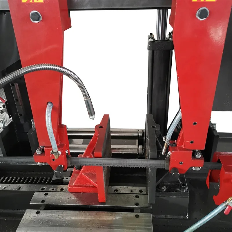 Ленточнопильный станок по металлу модели G4240 представляет собой горизонтальный ленточнопильный станок с двумя стойками, в котором использована высокопрочная конструкция с двумя стойками. Стойки подвергаются точной механической обработке и искусственному старению, что обеспечивает выдающуюся жесткость и стабильность, позволяя эффективно компенсировать боковые ударные нагрузки в процессе резки, предотвращать вибрацию пильной рамы и гарантировать, что пильная лента всегда сохраняет стабильную траекторию реза, что с самого начала обеспечивает точность обработки. Кроме того, направляющая конструкция с двумя стойками в сочетании с высокоточными линейными направляющими обеспечивает более плавное и стабильное движение подъема и подачи пильной рамы, снижает механический износ, продлевает срок службы оборудования и сокращает затраты на последующее техническое обслуживание. Данный станок применяется для отрезки и раскроя различных черных и цветных металлов в различных отраслях промышленности.