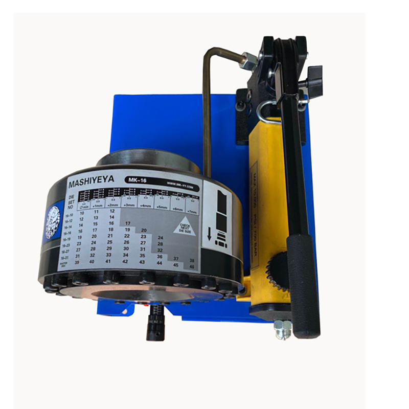 Ручной обжимной станок для РВД MK-16 оптимален для сервисных мастерских и мелкосерийного производства РВД. Практичный РВД станок «эконом-класса» подходит для обжима гидравлических шлангов до 1 дюймов, до 30 шт/час. Прост в обслуживании и эксплуатации. Энергонезависимый. Станок для опрессовки РВД имеет компактные размеры, ручки для переноски, его можно установить на любой верстак или использовать в передвижной мастерской, не занимает много места. Выдвижной ящик предназначен для хранения 8 комплектов кулачков. Этот ручной обжимной пресс отличается рядом авторских инженерно-технических решений, обеспечивающих качественный обжим, удобство и скорость работы, долговечность оборудования для изготовления РВД. MK-16 качественный и недорогой ручной обжимной пресс.