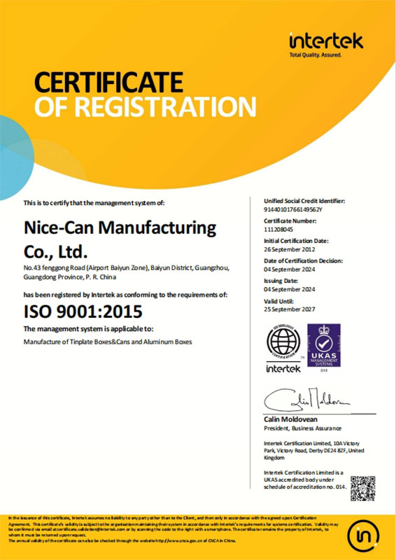 ◆ Печать: 4C (CMYK) офсетная печать, один цвет Pantone, белый лак и глянцевое покрытие для внешней стороны крышки; 4C (CMYK) офсетная печать, цвет Pantone и белый лак для внешней стороны корпуса; Серебряный лак для внешней стороны дна и внутренней части жестяной коробки.