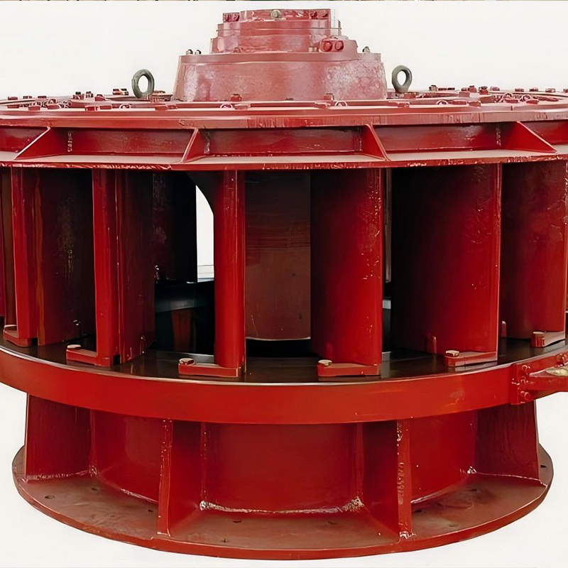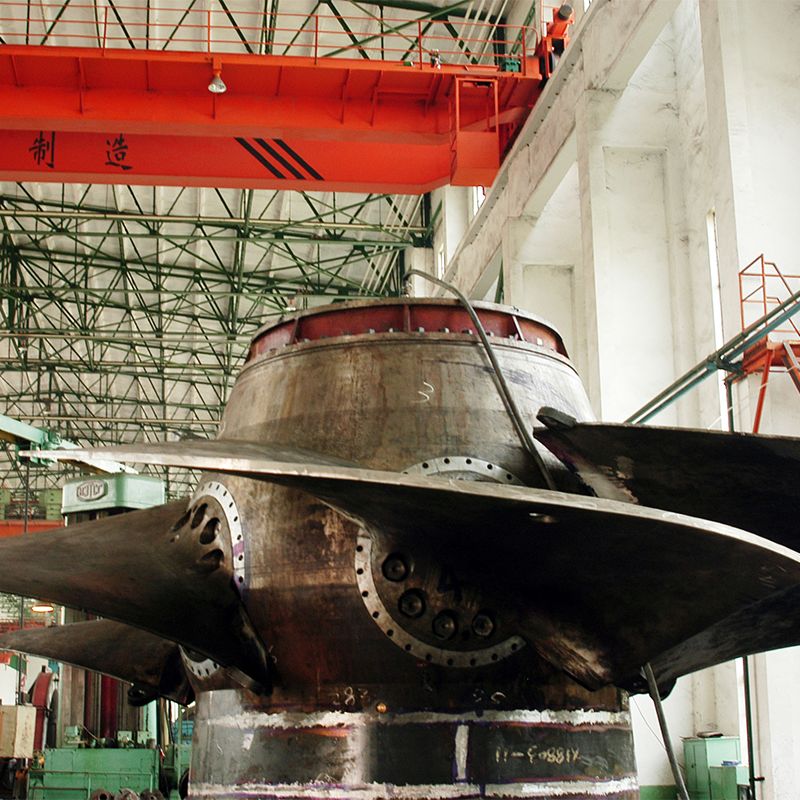 то есть, лопасть может быть повернута вокруг своего колеса Yi, для того, чтобы сотрудничать с направляющей лопатки потока воды, и получить хороший поток вокруг условий, для улучшения высокой эффективности диапазон турбины; ZD тип для осевой фиксированной лопасти, то есть, лопасть и ступица фиксируется между ними, они только во внутренней структуре ротора и производительность отличается, ZZ тип является более сложным, чем ZD тип. Осевая турбина характеризуется осевым потоком воды в бегунок и осевым оттоком, а поток воды из камеры отвода был преобразован из радиального в осевой в пространстве между направляющей лопаткой и бегунком. Количество лопаток турбины этого типа меньше, обычно 3-8 штук, лопатки консольно закреплены в корпусе бегунка, их прочность ограничивает диапазон применения по напору, обычно используется на гидроэлектростанциях 3-80 м.