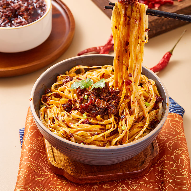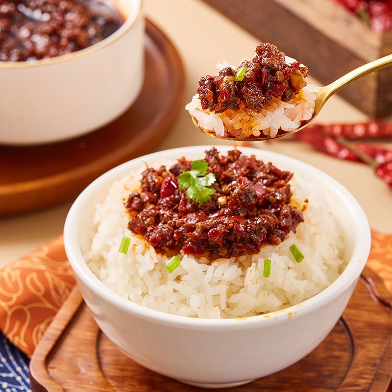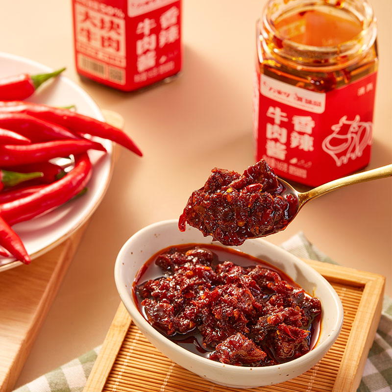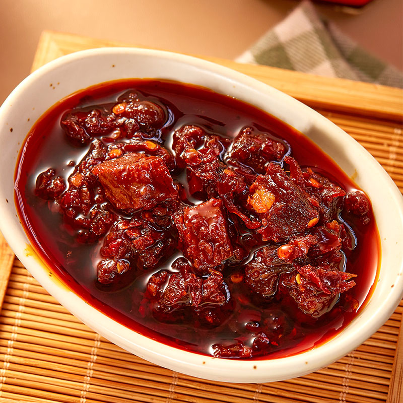 Состав: Говядина (добавлено 50%), растительное масло, хлопья чили, заваренный уксус, глутамат натрия, чеснок, зеленый лук, соль, имбирь