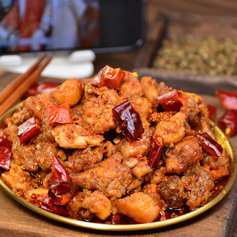 Используя только задние лапки, которые умеренно активны, их вручную нарезают на равные кусочки и промывают проточной водой от загрязнений. В рецепте острого маринада, хранящегося в секрете уже много веков, основными ингредиентами являются перец Ханьюань-сычуань и перец Гуйчжоу-чаотянь, а также такие секретные специи, как цаоко (яблоко) и гвоздика. Сначала обжарьте до появления аромата, чтобы получился красный маринад на масле. Затем нарезанного кубиками кролика медленно маринуют на медленном огне до загустения соуса. Одурманивающий аромат сычуаньского перца и острый, жгучий вкус перца чили переплетаются, пропитывая каждую клеточку крольчатины, создавая многослойный, пряный вкус. Первый глоток — это покалывание от сычуаньского перца, за которым следует мягкий жгучий вкус перца чили. Послевкусие покалывает от естественной сладости мяса, создавая пряный, но не резкий вкус, который усиливается с каждым разом.