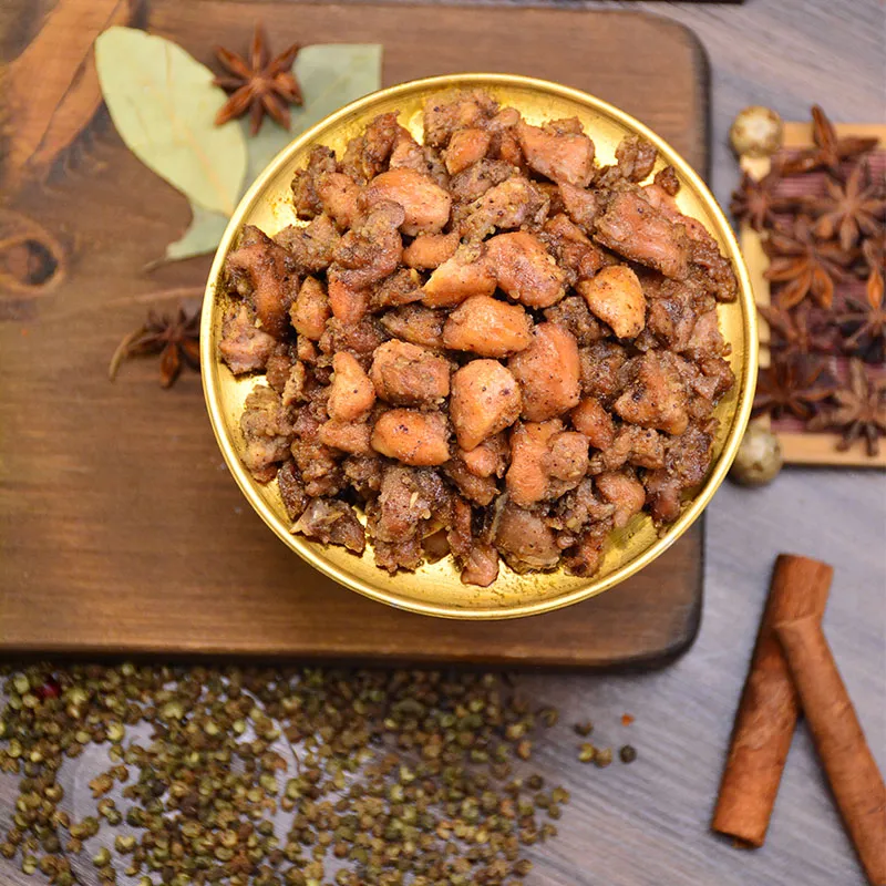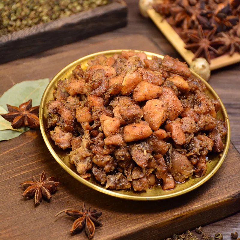 Тщательно отобранная вырезка кролика, нарезанная вручную, промытая и очищенная, затем тушится по традиционному рецепту с пятью специями. Затем нарезанный кубиками кролик погружается в бульон медленного приготовления, содержащий более десяти натуральных специй, включая бадьян, корицу и лавровый лист, и тушится при постоянной температуре, позволяя насыщенному вкусу специй гармонично сочетаться со сладостью мяса кролика. После тушения нарезанный кролик проходит низкотемпературную обработку, сохраняющую свежесть мяса, что позволяет сохранить его нежность. Размер 158 г идеально подходит для 1-2 человек, что делает его идеальным гарниром к основным блюдам, напиткам или перекусом во время кофе-брейка. Банку удобно брать с собой, и она готова к употреблению прямо из банки, позволяя наслаждаться аутентичными вкусами тушеного мяса бачжун, Сычуань, в любое время и в любом месте. Каждый кусочек — это яркая интерпретация сути сычуаньской кухни.