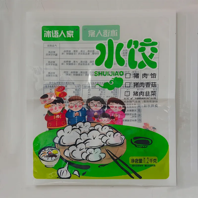 Пакеты для пельменей представляют собой материал для упаковки пищевого класса, специально разработанный для замороженных пельменей. Основные используемые структуры включают композитные пленки, такие как PET/PE, BOPP/CPP, которые обладают стойкостью к низким температурам (-18°C), влагонепроницаемостью и высокой термосвариваемостью, и подходят для автоматической упаковки такой продукции, как пельмени, вонтоны, хунтунь и другие.