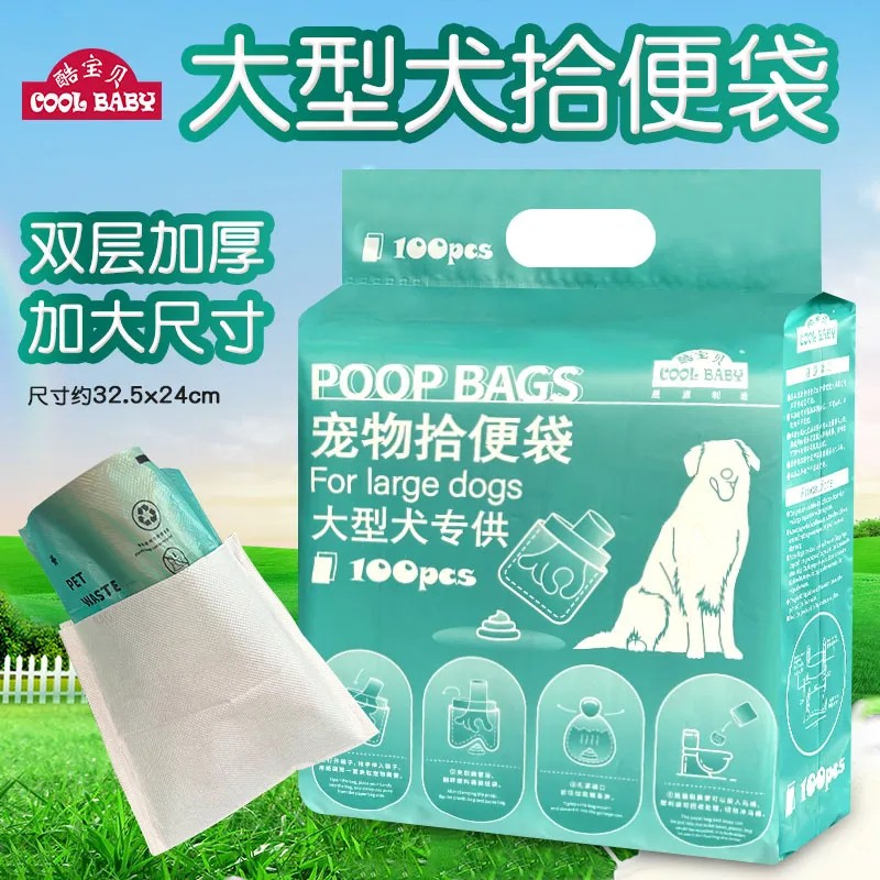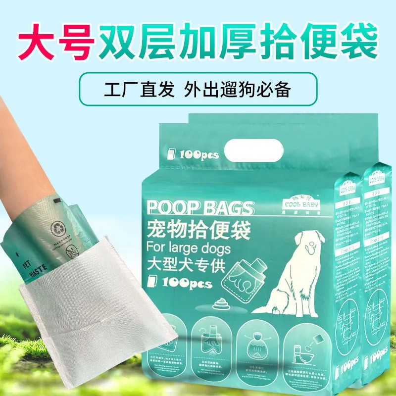 Это пакет для уборки за крупными собаками - увеличенного размера, двухслойный, усиленный. Его особенности: большой и удобный для выворачивания, изолирует запах, практичный в использовании. Конструкция продукта состоит из слоя бумаги и слоя пластика: бумага является водорастворимой, растворяется при контакте с водой и может быть смыта в унитаз, а пластиковый пакет производится из биоразлагаемого материала, что обеспечивает экологическую безопасность.