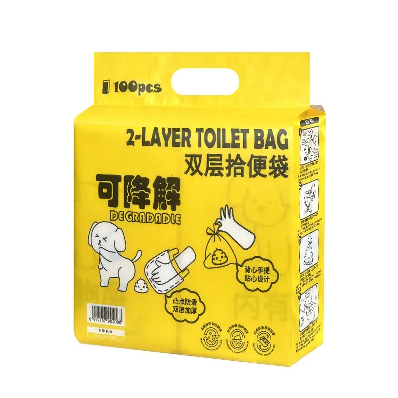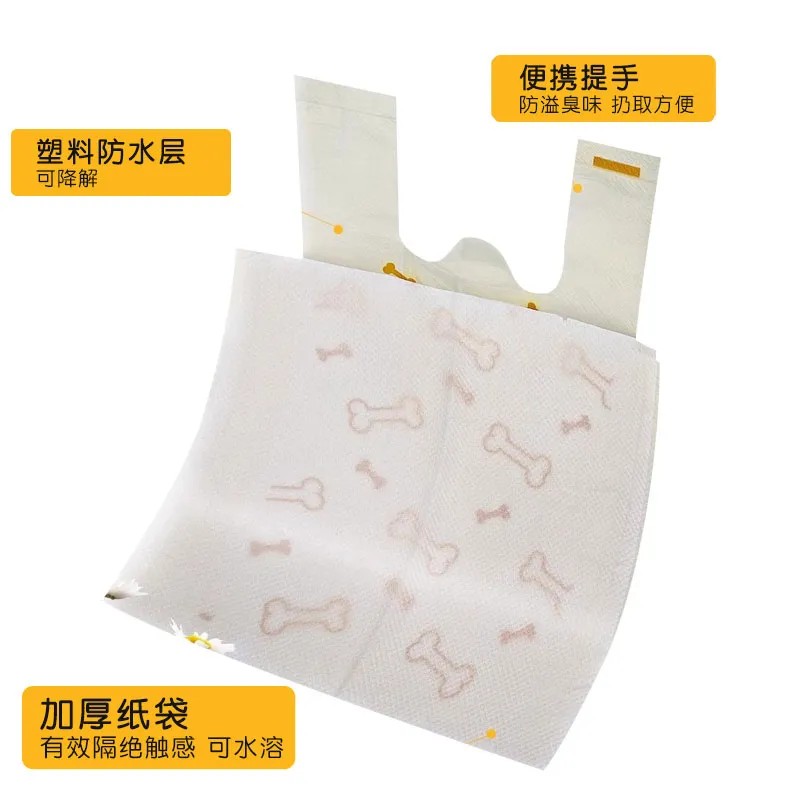 Это пакет-жилетка для уборки за собаками малых и средних пород, двухслойный усиленный пакет для уборки за питомцами. Его особенности заключаются в том, что его можно завязать в узел для изоляции запаха, он имеет удобную ручку для переноски. Продукт состоит из слоя бумаги и слоя пластика: бумага является водорастворимой, растворяется при контакте с водой и может быть смыта в унитаз, а пластиковый пакет является биоразлагаемым, что позволяет обеспечить экологическую безопасность.