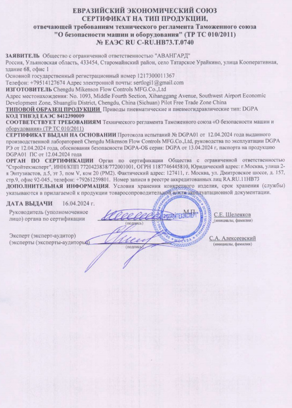 Приводы аварийного отключения труб с местным и дистанционным управлением